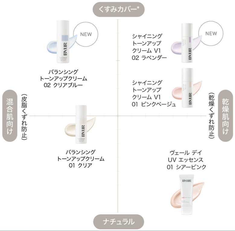 バイユアの化粧下地には、いくつかのタイプがあり、それぞれに特徴があります。